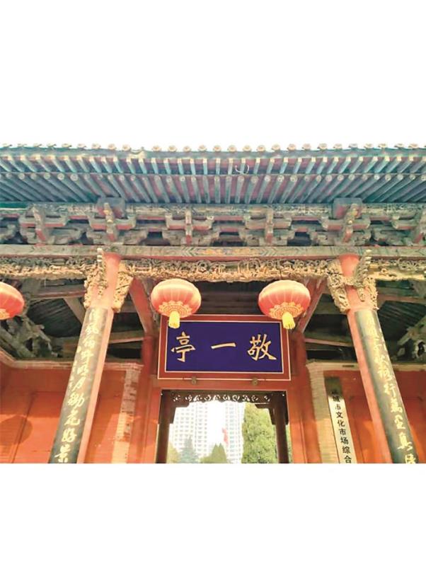 如今,人们路过红旗街318号时,会看到一栋面宽三间,雕梁画栋、古朴庄重、气势不凡的门厅,大门上方一块蓝底的牌匾,写着“敬一亭”三个金黄色大字,格外引人注目。“敬一亭”默默延续着河东的深厚文脉。