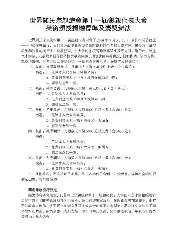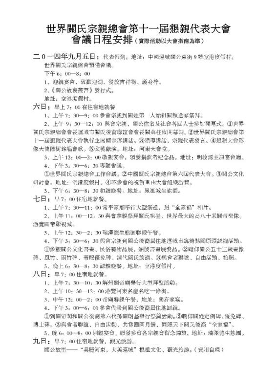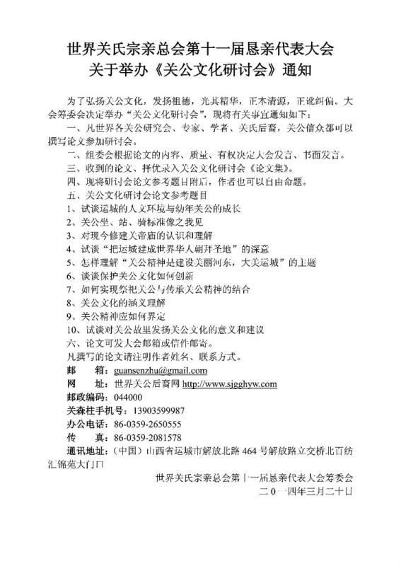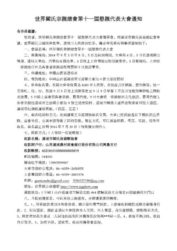 世界关氏宗亲总会第十一届恳亲代表大会邀请函