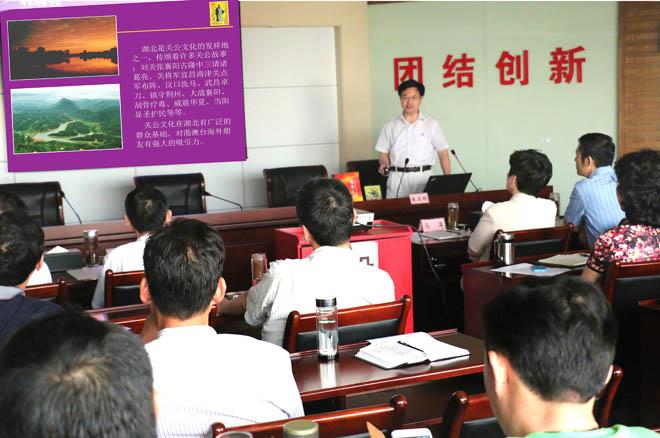 湖北省委统战部纪委书记刘平安,副部长、湖北省中华文化学院党委书记马萍,副部长蔡藻鲜,秘书长杨声驰,副巡视员衣淑华及统战部数十名干部听取了关帝文化讲座。