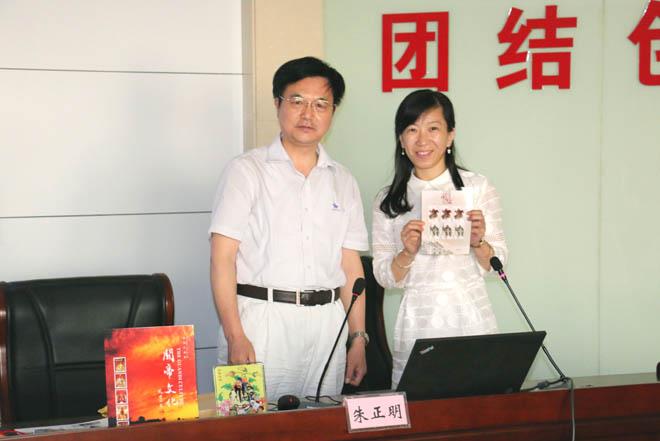 讲述中,朱正明提出许多问题,统战部干部纷纷抢答,并获得珍贵奖品,如世界关帝像整张邮票,关公邮票六连张,雪山下的关公唐卡,《世界关帝文化》光盘等。