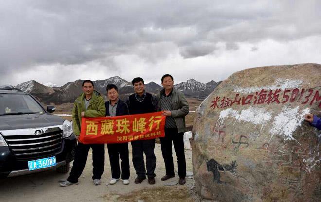 2015年4月,李春福董事长(右二)带着建设者,翻过雪山再进西藏