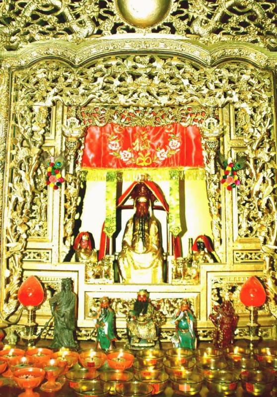 毛里求斯首都关帝庙金碧辉煌的关公神龛