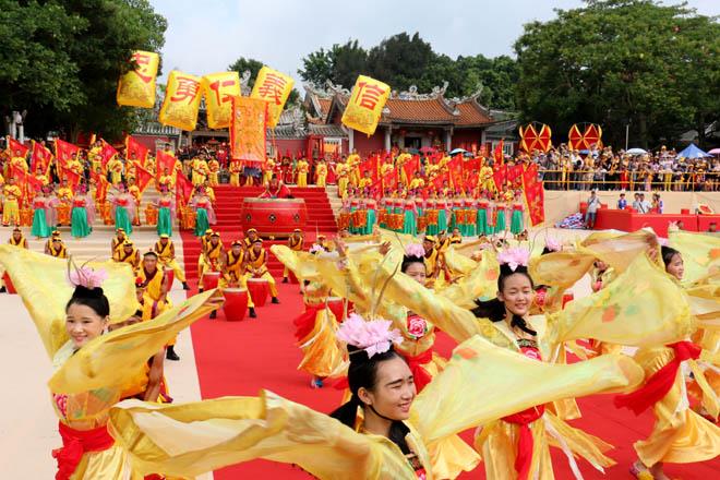 来自美国、瑞士、蒙古、韩国、菲律宾、马来西亚、新加坡等国家的各界知名人士,来自台湾的原法务部长廖正豪、立法委员林德福及2000多位台湾信众,来自中国大陆各省市的数十位专家学者齐聚东山海岛参加盛典。漳州市人大常委会主任陈汉夫宣布开幕。原海军某舰队领导黄江将军、省人大常委会委员吴玉辉,漳州及东山领导林文耀、李小庆、黄庆辉、杨银玉等参加开幕活动。黄庆辉、林德福等分别致辞。